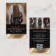 Showcase your hair extensions brand or salon with the Luxury Hair Extensions Salon Arch Photo Black Gold Business Card, designed for a refined, modern, and high-end aesthetic. The front features an elegant arch-shaped photo space to display your professional portrait or signature hair extension work, layered over a subtle background image with soft opacity and a rich black-and-gold color overlay for a luxe, sophisticated look. Easily upload your logo or salon name to personalize the design and create a strong, memorable brand presence. The reverse side highlights a stylish three-photo gallery—perfect for showcasing hair transformations, extension installations, color matching, blending, or custom styling. Each image features a soft cascading ombré effect, creating a cohesive and fashion-forward visual flow. Customize with your contact details and a QR code for quick access to online booking, your website, or social media. Ideal for hair extension specialists, salon owners, hair stylists, wig and extension artists, and beauty professionals seeking a sleek, upscale business card that leaves a lasting impression. Design by © Moodthology Papery