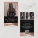 Showcase your hair extensions brand or salon with the Luxury Hair Extensions Salon Arch Photo Black Rose Gold Business Card, designed for a refined, modern, and high-end aesthetic. The front features an elegant arch-shaped photo space to display your professional portrait or signature hair extension work, layered over a subtle background image with soft opacity and a rich black-and-rose-gold color overlay for a luxe, sophisticated look. Easily upload your logo or salon name to personalize the design and create a strong, memorable brand presence. The reverse side highlights a stylish three-photo gallery—perfect for showcasing hair transformations, extension installations, color matching, blending, or custom styling. Each image features a soft cascading ombré effect, creating a cohesive and fashion-forward visual flow. Customize with your contact details and a QR code for quick access to online booking, your website, or social media. Ideal for hair extension specialists, salon owners, hair stylists, wig and extension artists, and beauty professionals seeking a sleek, upscale business card that leaves a lasting impression. Design by © Moodthology Papery
