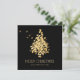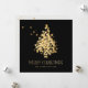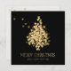 En vacker och lyxig Julgran-design med gyllene hjärtan på svart bakgrund. Och brev i guldtypografi: god jul och Gott nytt år.