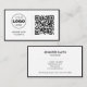 This premium layout features a sophisticated black-and-white composition with balanced spacing, elegant typography, and a discreet yet powerful QR code integration. The front side highlights your logo in a clean circular frame for strong brand identity, while the reverse side presents contact information in a structured, executive-style layout that communicates confidence and credibility.