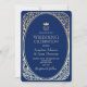 Elegant och formella, den här marinblå och guld-bröllopsinbjudan innehåller ett royal monogram med guld krona, omgivet av berikat foil-stil botaniskt gräns. Perfekt för ett lyxigt, traditionellt bröllop firande, som belyser parets initialer och händelsedetaljer med klassisk typografi. Idealisk för formella svarta affärer eller storskalig bröllop. Anpassa med ditt eget namn, datum och plats för en tidslassig, normal beröring.