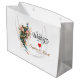 Elevate your special event with this luxurious peacock floral gift bag design. Featuring rich jewel tones, elegant gold accents, and intricate ornamental details, this artwork creates a sophisticated and premium look.