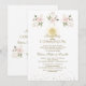 Elegant card design featuring watercolour delicate pink, blush flowers, green and gold leaves, a faux gold cross, faux gold confetti, on a white background. Use Personalize tool to add your info. For matching items, please, visit my Religious Events Collection.