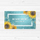 En vit, feminin blommigt affärskort med tealblått glitter och folieramat som avgränsas av vattenfärgade solblommor. Lägg till ditt eget namn och yrke (hårstilist, makeup artist, cosmetolog, lash artist osv.) till förstamallarna. Din affärsinformation kan göras tillgänglig i mallarna på baksidan av kortet.