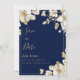 Luxury white gold floral navy blue Save the Date Inbjudningar