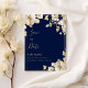Luxury white gold floral navy blue wedding Save the Date invitations timeless blend of elegance and sophistication, this white and gold floral wedding invitation features delicate botanical accents and shimmering metallic details. The refined navy blue backdrop highlights the intricate gold foiling, creating a radiant and romantic impression. Perfect for couples seeking a classic yet opulent design, it sets the tone for an unforgettable celebration. Exquisite craftsmanship ensures every card feels as special as your day.