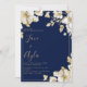 Luxury white gold floral navy blue Wedding Inbjudningar