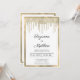 Luxury white gold glitter drips wedding inbjudningar