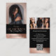 Showcase your wig brand or studio with the Luxury Wig Studio Arch Luxe Photo Black Rose rose-Gold Business Card, designed for a refined, modern, and high-end aesthetic. The front features an elegant arch-shaped photo space to display your professional portrait or signature wig styling work, layered over a subtle background image with soft opacity and a rich black-rose-gold color overlay for a luxe, sophisticated look. Easily upload your logo or studio name to personalize the design and create a strong, memorable brand presence. The reverse side highlights a stylish three-photo gallery—perfect for showcasing custom wig designs, hair transformations, styling results, colors, or extensions. Each image features a soft cascading ombré effect, creating a cohesive and fashion-forward visual flow. Customize with your contact details and a QR code for quick access to online booking, your website, or social media. Ideal for wig artists, wig stylists, custom hair designers, salon professionals, and beauty experts seeking a sleek, upscale business card that leaves a lasting impression. Design by © Moodthology Papery
