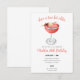 Inbjudan har en vattenfärg porträtt i en lyktmartini med texten "hon är lite äldre".