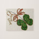 Pussel med en fyraklöver eller shamrock med "Lycka till" från irländarnas tur.