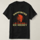 Hockey T-shirt med en silhuette hockey-spelare läser: "Happiness spelar Ice Hockey!"