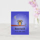 Ett Lycka till-kort som visar ett uggla med överdimensionerade glasögon och sitta vid gren i träd. I bakgrunden är måne och stjärnor mot ett nattligt himlar. Hälsning är "Lycka till" (anpassade), och texten är också redigerbar för t.ex. en särskild examen eller test. Anpassadets meddelande i är "Att tänka på dig och önska dig lycka till" - skriv bara i rutorna för att redigera.