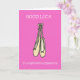 Ett söt par balett tofflor som är bundet ihop av rosett band och hänger mot en ljus rosa bakgrund. Ord "Lycka till till en underbar Ballerina" åtföljer bilden.