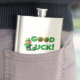 En lustig Leprechaun i grönten kostym med ett rött skägg och ett guld-mynt i hans hand önskemål du lycka till!