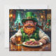 Ett snyggt St Patrick's Day-kort med en irländsk läppare på en pub som dricker öl och äter corned beef och kål. Baksidan av kortet kan anpassas med din egen St Patrick's Day-hälsning eller hälsning.