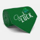 Lycka till Fyrklövra Shamrock-halsen slips. Modern abstrakt grönt mönster med trendigets vita typografi citerar Lycka till och handritade klöver med fyra löv för tur.