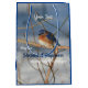 Söt liten blåfågel som vingar över att vila på gren mot en bakgrund av snö med det inspirerande ord... Kan lyckans blåfågel alltid ligga inom dig. Naturfotografi av Susan. Anpassa med texten.
