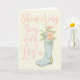 Denna gratulationskort är perfekt för att skicka dina bästa önskningar till den blivande bruden på hennes brudslöja-fest. Kortet har budskapet "Showering You with Love" på framsidan i vackra rosa bokstäver mot en elfenbensvit bakgrund med en illustration av en ljusblå gummistövel som håller en bukett blommor. Insidan av denna gratulationskort kan lämnas som den är eller anpassas med din egen personliga hälsning.