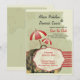 En charmerande destination bröllps inbjudan. Med en touch av vintage stil har denna design stränder parasoll, en resväska, ett djärvt randigt mönster och en dekorativ etikett för din personliga touch.