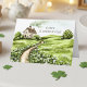 Skicka varma lyckönskningar på St. Patrick's Day med det här charmiga akvarellkortet som visar en pittoresk irländsk stuga omgiven av böljande gröna kullar och fält fulla av klöver. Inspirerad av den fridfulla skönheten i det irländska landsbygden fångar den eleganta designen Irlands anda med mjuka gröna toner, milda stigar och klassisk stugcharm.