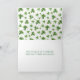 Skicka lyckliga önskningar på St. Patrick's Day med detta fräscha och festliga kortet med treklövermotiv. Med ett genomgående mönster av gröna klöverblad och ett rent banderoll med texten "Happy St. Patrick's Day" känns denna design klassisk, glad och enkel att ge bort.