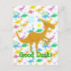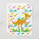 Postkort för Tecknad i Lycka till Färg Dinosaur. En söt liten orange som leker Parasaurolophus tecknad dinosaur med lycklig färg dinosaur patterm (Stegosaurus, T-Rex, Triceratops, Diplodocus & Parasaurolophus) bakgrundsvykort. Detta underbara vykort för färg tecknad är fullt anpassade! Ändra texten "Lycka till!" och lägg till bilder och text! Ett underbart dinosauriekort för lycka till färg!