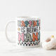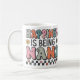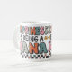 Anpassningsbar klassisk mugg med "Lycka är att vara nana" i färgstark blandad typografi med små blommor och ett hjärta på båda sidor.