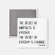 En magnet för att påminna er om vad som är viktigt på galenheta varje dag. "Lyckans hemlighet är frihet. Frihetens hemlighet är mod." Tack för att ni har övervägt mitt arbete. Det uppskattas mycket. Den lilla artisten x