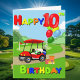 Zooma in på födelsedagsscenen, en ljusröd golfvagn ger upphetsning och glädje! På framsidan sitter en proaktiv golftårta, medan baksidan är staplad med färglöst presenter och ballonger fyllda med en gigantisk 10 ballong. Med fet färgad är detta kort perfekt för att fira en liten pojkes speciella dag.