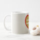 Kaffet mugg på årsdagen i lycklig har en ostronvit bakgrund och text för dem som firar alla former av 12:e-årsdag. Bakgrundsrött hjärta kan göras större eller tas bort av celeste@khoncepts.com