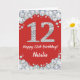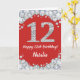 Lycklig 12:e födelsedag Rött kort och Silver Glitter kort med personlig namn. Om du vill göra ytterligare anpassningar klickar du på knappen "Anpassa" och användor verktyg som är utformat för att ändra mallen.