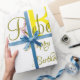 Lycklig 15: e födelsedag gult lägg till namn monog presentpapper
