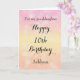 Ett vackert 16-årsdagars barndotterkort i lycklig, som du lätt kan anpassa med namn. Det här barndotterns födelsedagskort har en bokeh-design med bakgrunden i en ljus rosa, lätt gult och lätt orange. Du kan också anpassa födelsedagsmeddelandet i kortet om du vill.