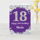 Lycklig 18:e födelsedagskortet Lila och Silver Glitter med personlig namn. Om du vill göra ytterligare anpassningar klickar du på knappen "Anpassa" och användor verktyg som är utformat för att ändra mallen.