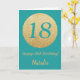 Lycklig 18: e födelsedagskortet Teal och Guld Glitter med personlig namn. Om du vill göra ytterligare anpassningar klickar du på knappen "Anpassa" och användor verktyg som är utformat för att ändra mallen.