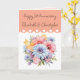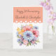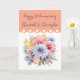 Lycklig 1:a Bröllop-årsdagen. Ett helt år av kärlek, skratt och oförglömliga minnen - hedrar många fler! Precis som de där bruna gerbera-blommorna, kan kärlek fortsätta att blomma på det ljusaste och vackraste sättet. Vare sig det är ett år eller femtio, är varje ögonblick tillsammans värt att fira. Lägg till namnen på lycklig-paret på framsidan. vit/persika