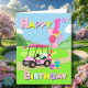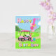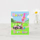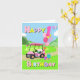 Den här vackra golfvagnen i rosa polka, som bär på en golfkaka med födelsedagstext, är parkerad bredvid en grönt som är märkt med ett nummer 1-flagga-stift. På andra sidan karten är det en hög med färgstarka gåvor och spirande heliumballonger som är kompletta med ett stort nummer 1-ballong som gör detta till ett perfekt-födelsedagskort för en liten flicka.