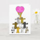 Tecknad katter står på varandras axlar och den översta katten håller ett stort rosa hjärta med ord "Lycklig 21:a födelsedagen" skriven på den.