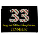 Den här enkla julhelgen och roligtens julhelg och födelsedagstäcken december 25-årsdagen har ett stort nummer "33", med en grönt/vit/röd rand mönster. Det innehåller också meddelandet "Lycklig 33:e födelsedagen & God jul" och ett eget namn. Bakgrunden är svart på färgad. En presentpåse som denna kan användas när man slår in presenter eller gåvor som ges till någon vars trettiotredje födelsedag infaller den 25 december (juldagen). [~Z0000407]