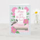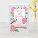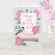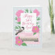 En skrivmaskin för rosa vintage omgiven av blommor och löv med en vattendropp på skrivmaskinen. En biet papprare från skrivmaskinen har handskriften ord Lycklig 34:e födelsedagen Moster. Ett underbart födelsedagskort till moster! © Ness Nordberg