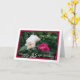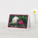 Önska någon grattis på födelsedagen med det här anpassadets hälsningskort. Byt namn och antalet år. Om årtalen är ett ensiffrigt nummer kan du öka storleka för numret lite för att det ska passa väl in i designen. Foto av vitt och rosa ros