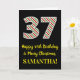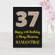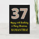 På framsidan av denna enkla och roligt julmatade och födelsedagstäckande 25-årsmatrisdesign finns ett stort nummer "37", med en grönt/vit/röd rand mönster. Det innehåller också budskapet "Lycklig 37:e födelsedag och God jul" och ett redigerbart namn. Bakgrunden till framsidan är svart färgad. Insidan innehåller ett hälsning-meddelande från anpassadets födelsedag, eller kan kanske tas bort och lämnas tomt om ett meddelande ska skrivas för hand i stället. Ett sådant här födelsedagskort i anpassadet kan vara ett roligt för att erkänna någons trettiosjunde födelsedag som också infaller den 25 december (juldagen). [~Z0000405]