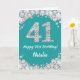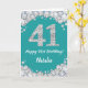 Lycklig 41:a födelsedagskort Teal och Silver Glitt Kort