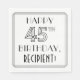 Den här snyggten på 1920-talet/1930-talet inspirerade konst deco stil födelsedagskalan med den pappra napkin-designen innehåller meddelandet "LYCKLIG 45TH BIRTHDAY," och en redigerbar mottagare namn. Numret "45TH" har ett geometriskt fodrad utseende i finare, och det finns också ett multilinjärt gräns runt hälsning-födelsedagsmeddelandet. Elegantens födelsedag kan sådana pappra servetter användas vid en födelsedagsfest som firar någons fyrtiofemte födelsedag. [~Z0000644]