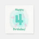 Färgning av siffran fyra i en grönt aqua med fyra rosor runt den, med Grattis på födelsedagen, trycks på pappra blöjor av anpassningsbar.