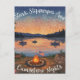 Ett vykort med roligt som spricker med mycket inslag i rött, vitt och blått Stars och stripes för att önska dina vänner och familj en Lycklig 4 juli. Den blå bakgrunden kan ändras till ett annat färg om du så önskar.