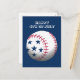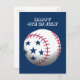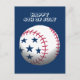 Helgdag vykort lycklig 4:e juli med en illustration av en baseboll i blått, rött och vitt färg.
