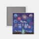 Unika och vackra fyrverkerier i rött, vitt och blått med Frihetsgudinnan i en silhuett av New York City för att fira Independence day. Lycklig 4 juli!
