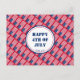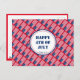 Enkelt vykort för snyggt som visar flagga från FÖRENADE STATER i mönster och LYCKLIG 4 JULI i mitten. Platshållartexten på baksidan är anpassade, så du kan ersätta med ditt eget hälsning. Matchande artiklar som är tillgängliga i USA-samlingen, så att du kan skapa några patriotiska presentuppsättningar.